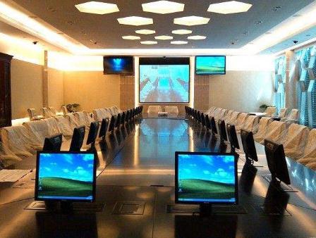 大型會議室的解決方案一般參會人員在六十人以內(nèi),配置方面音視頻輸出效果要求比較高。除配置視頻會議系統(tǒng)以外,一般還要裝會議音響系統(tǒng),多個麥克系統(tǒng),顯示系統(tǒng)等等。大型視頻會議方案音視頻輸入輸出方面要配備多路專業(yè)的麥克風以及功能擴聲器音響。視頻輸出方面需要采用大一點顯示屏,這樣才能有更直觀的視頻效果。墻壁需要是粉白色的,要做好顏色協(xié)調(diào)的吸頂燈,音響也要采用隔音裝置,防止共振、回聲現(xiàn)象。